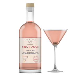De Nina's amor is alleen verkrijgbaar op onze site. De cocktail is ontstaan na een samenwerking met Licor Amor, een prachtige vanille likeur met echte stukjes bladgoud. De cocktail is vrij zoet met een licht zure nasmaak.